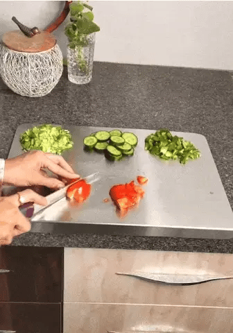 Crafted from strong yet gentle steel, this board is built to last for years 💪. It’s tough on tasks but easy on your knives, keeping them sharp and safe 🔧. Enjoy effortless chopping every time — it’s the only board your kitchen will ever need! 🍽️✨